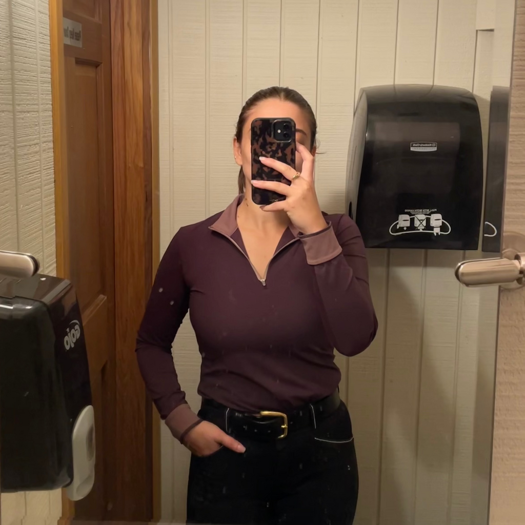 Bella’s structured, stretchy fabric offers support while under-arm mesh allows for airflow and breathability. Perfect for summer schooling or worn under your favourite v-neck sweater on cooler days.