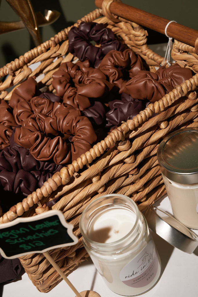 Made from hand-picked vegan leather, these scrunchies bring a sleek, modern edge with a soft, flexible feel. Durable yet stylish, the fabric creates a unique contrast that elevates any look.